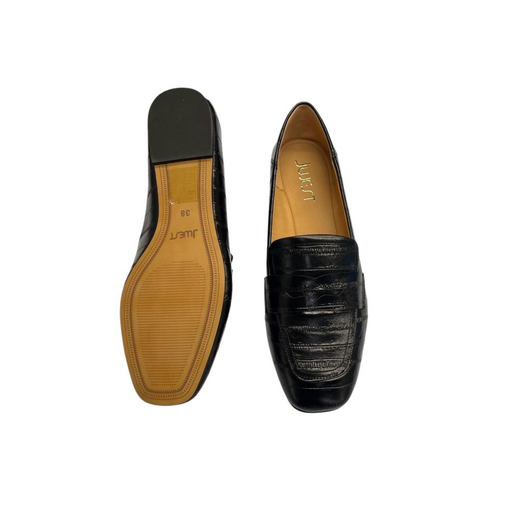 PRODUCT DESCRIPTION Croc-embossed faux leather upper for a luxe look Soft cushioned insole for all-day comfort Low flat heel for stable, easy walking BRAND J WEST feminine, elegant and timeless. A harmony of lifestyle of the successful career and homemaker women today Origin : Singapore DETAILS Material : Leather Insole...