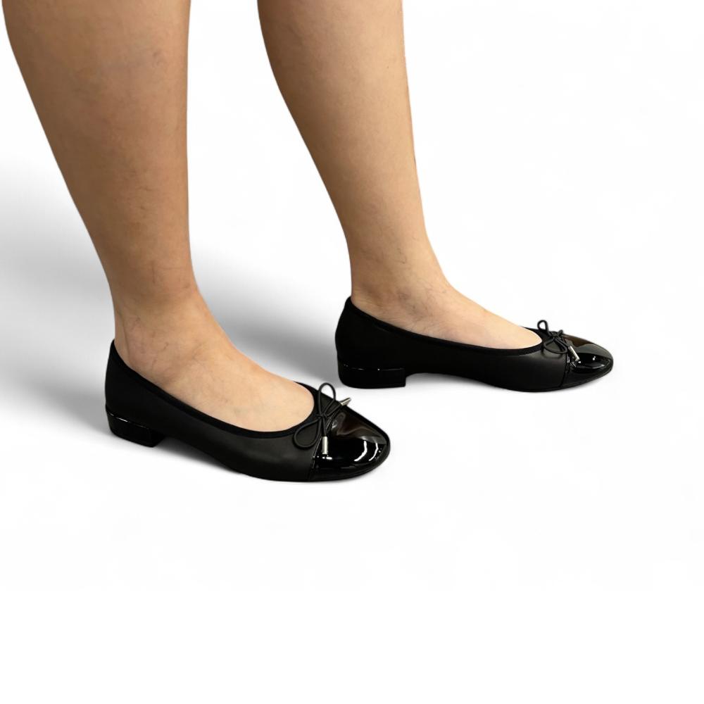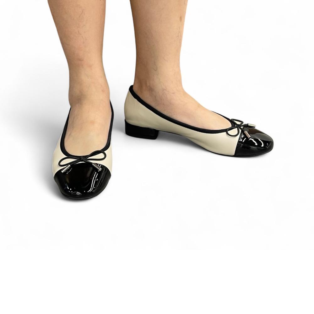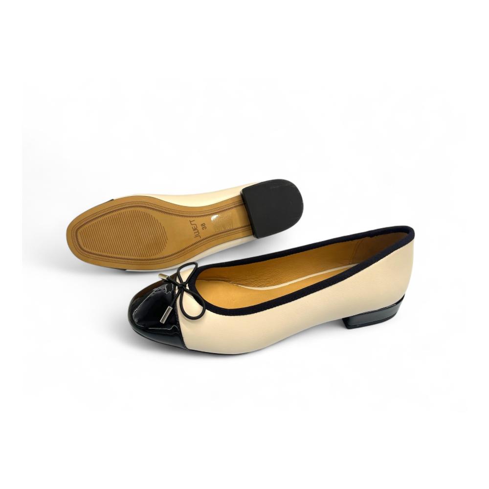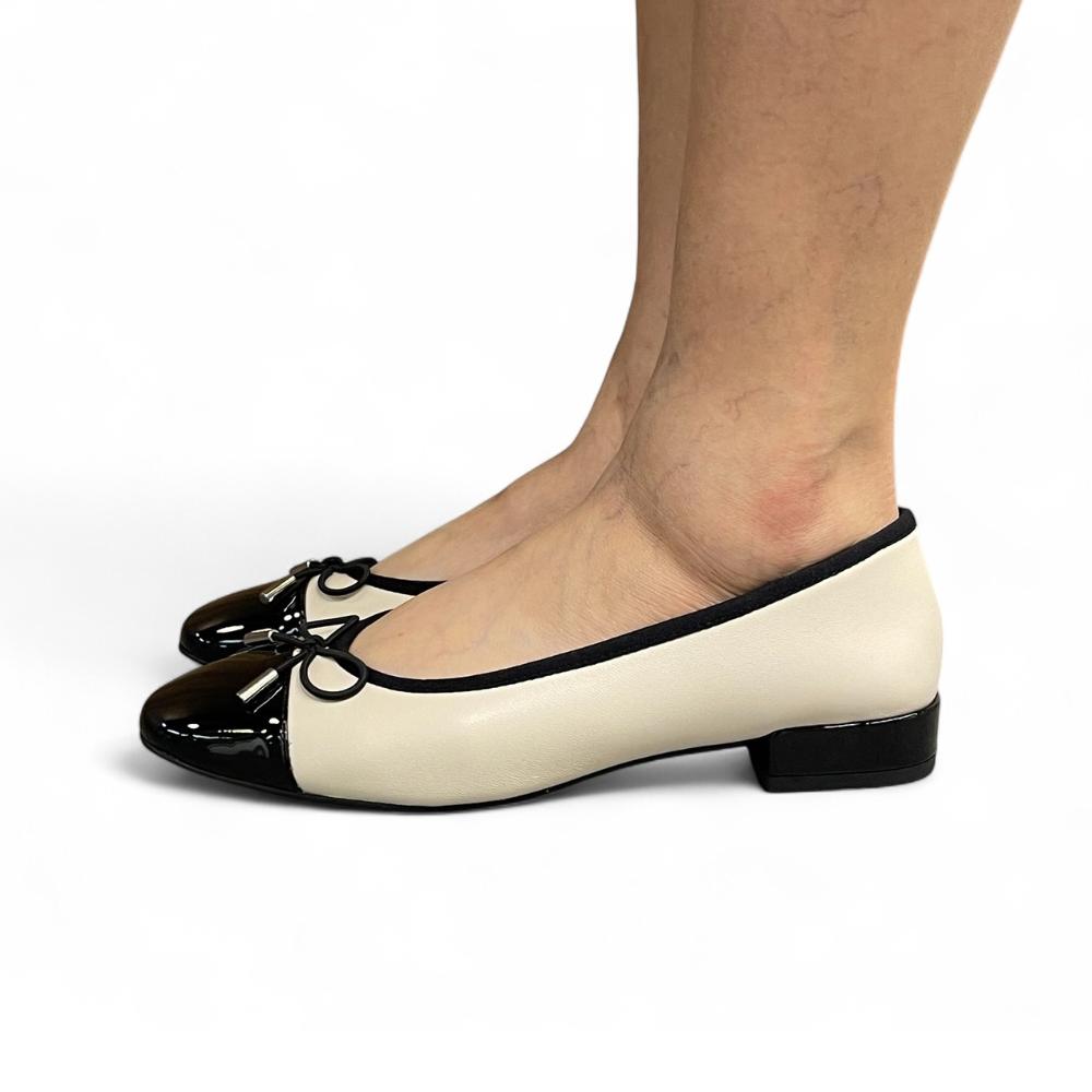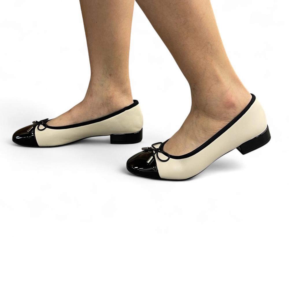 - Elegant two-tone design with classic black cap toe