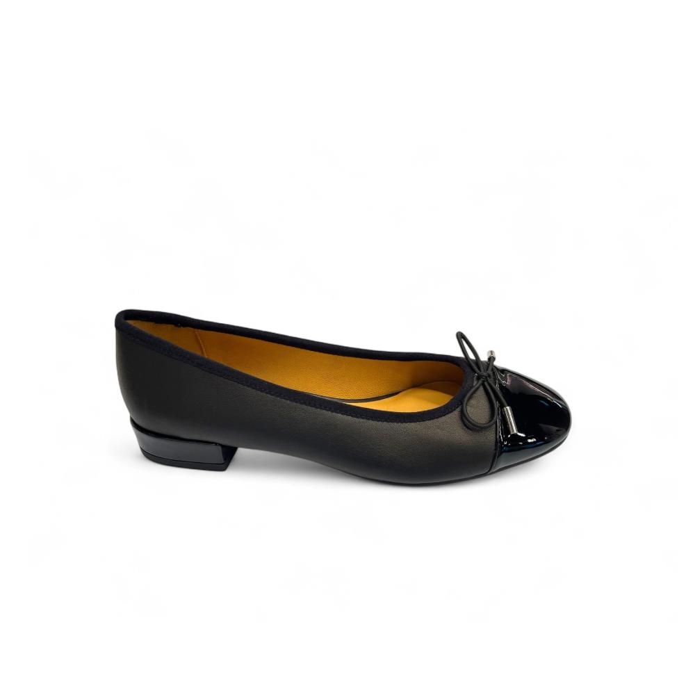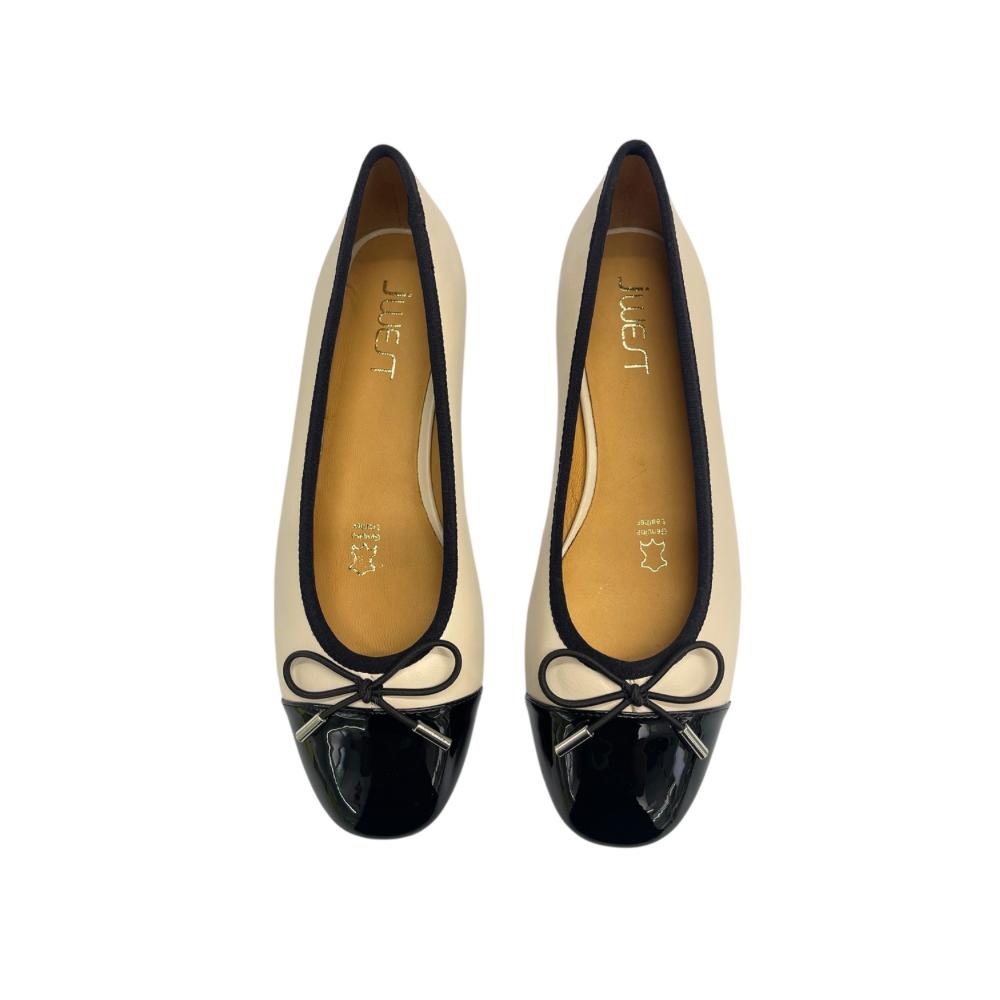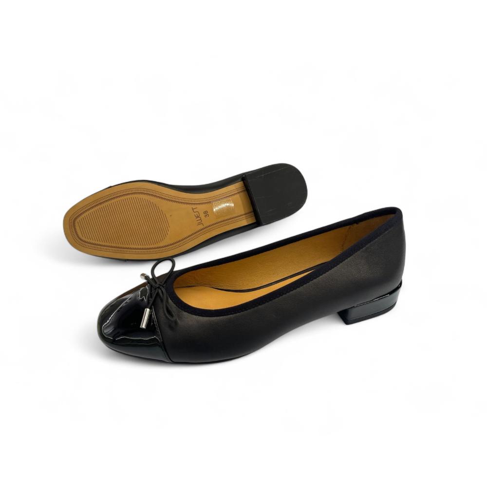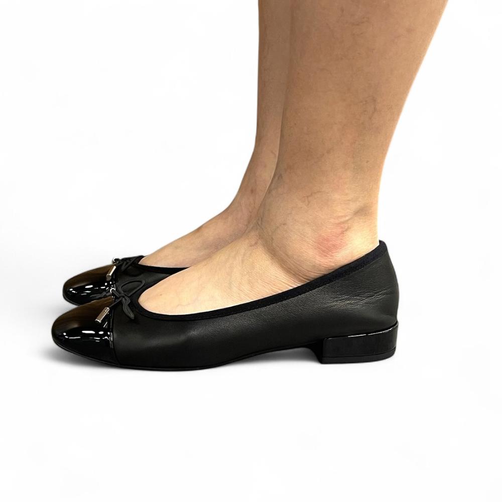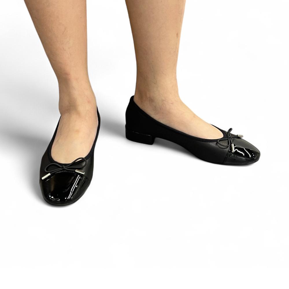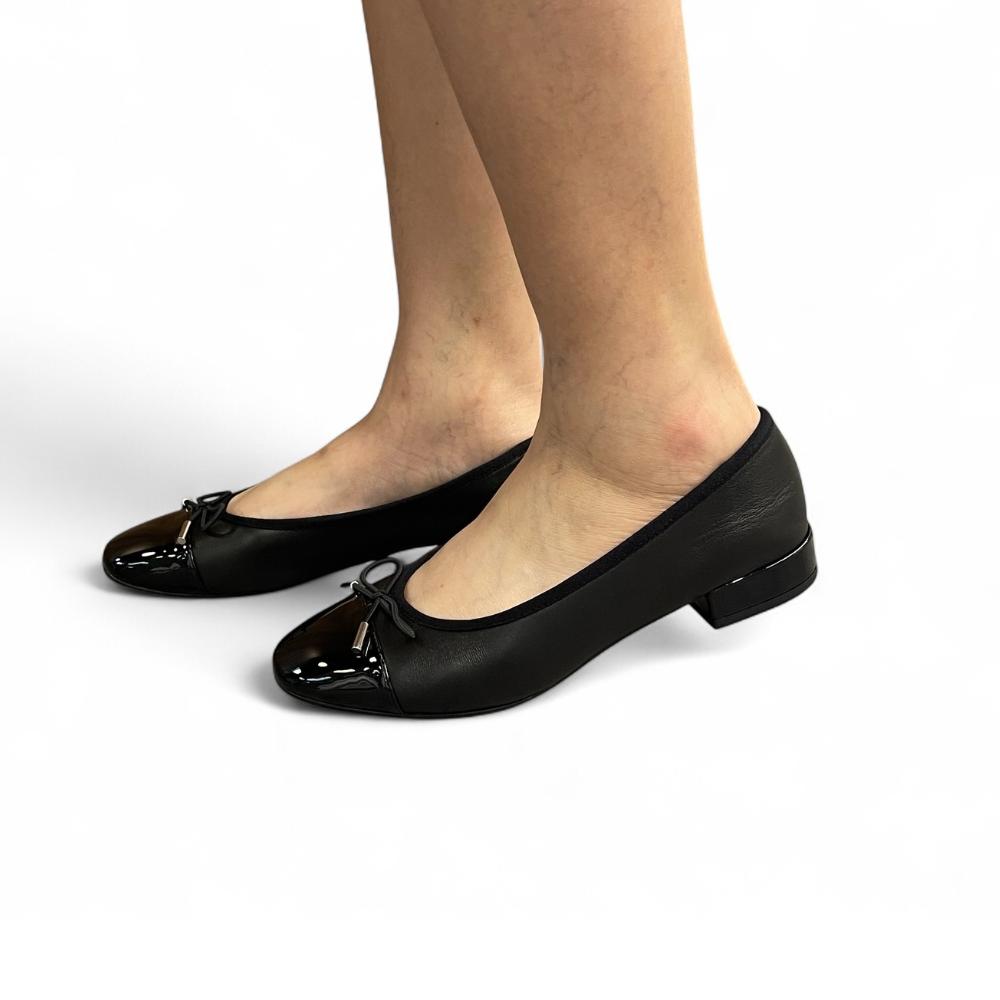 - Elegant two-tone design with classic black cap toe