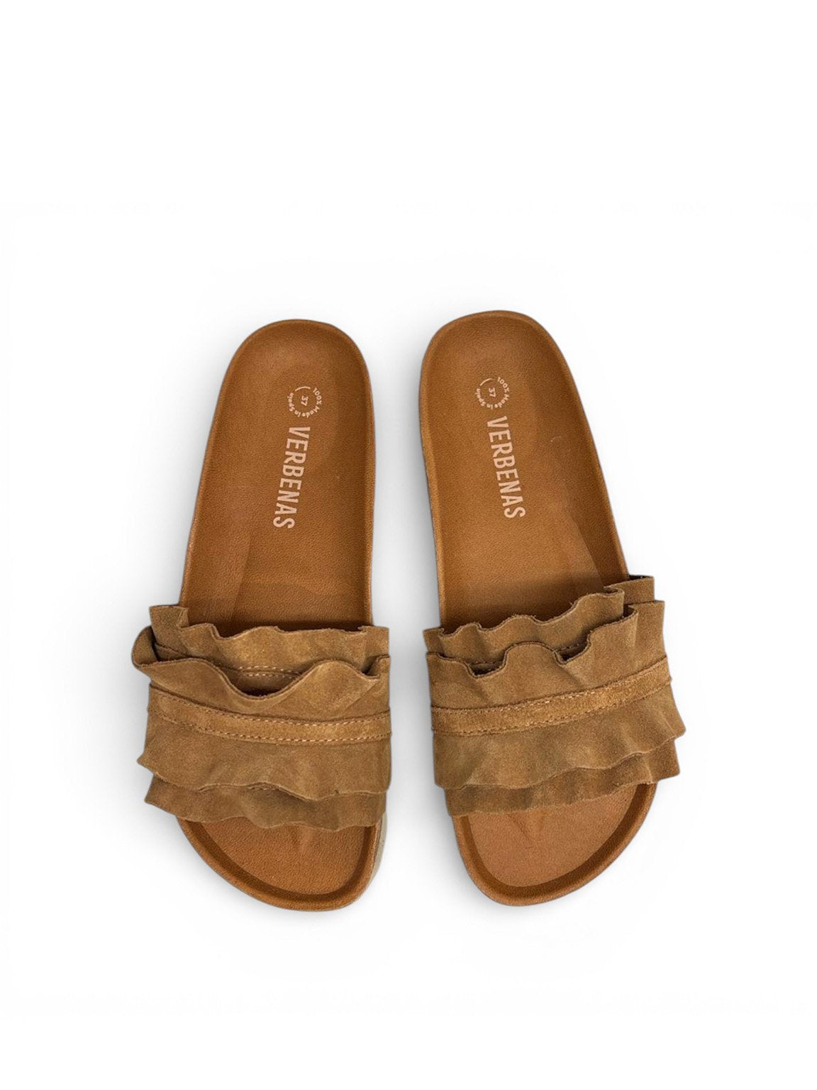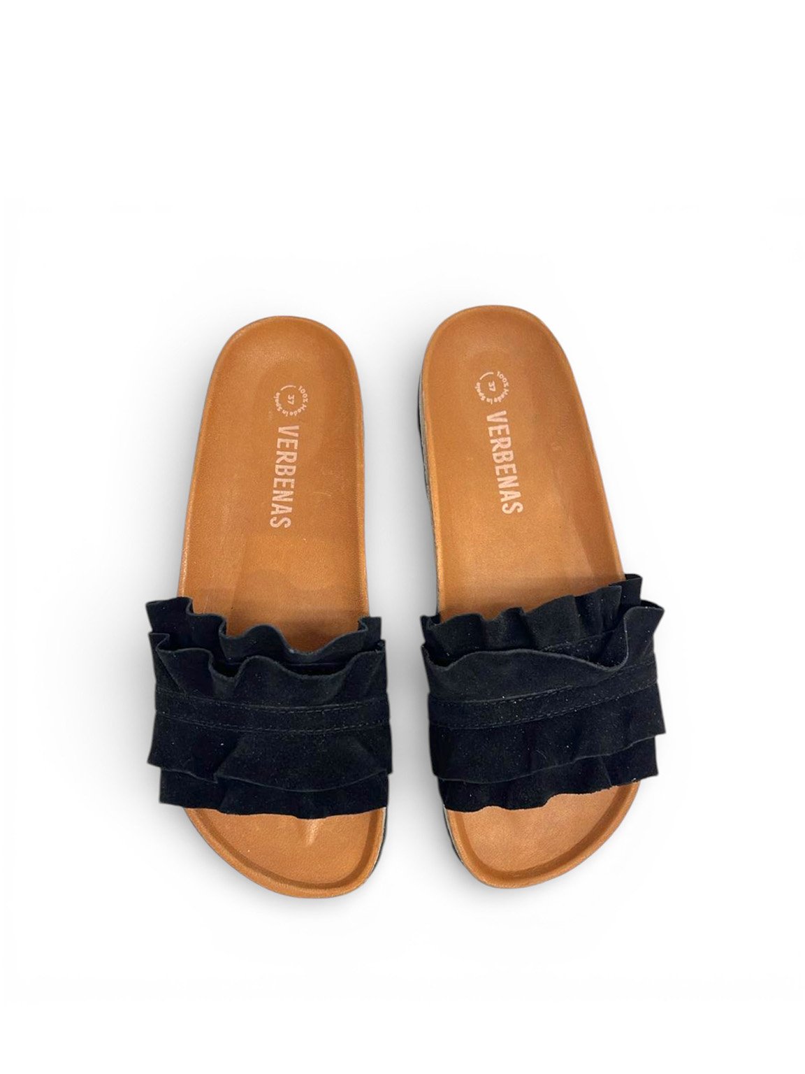 PRODUCT DESCRIPTION Minimal yet chic sihouette Lightweight Shaped cork footbed Comfortable for everyday wear BRAND VERBENAS icon of the Spanish shoe world. Colours, texture and silhouette exuding the endless energy of its craftsmanship. Origin : Spain DETAILS Material : Calf Leather Insole : Leather Height :1 inches Size Grade :...